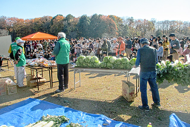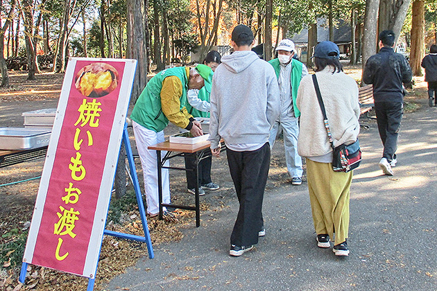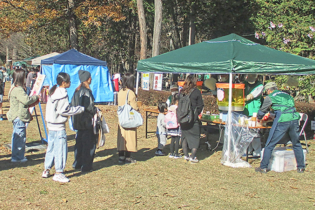 令和7年11月29日(月)に、みずほの自然の森公園で「落ち葉まつり」が開催され、約1,500人の来場がありました。 毎年、人気の「焼きいも」の販売には、行列ができていました。 また、子どもたちは「クリスマスリース作り」や「昔遊び」などを楽しんでいました。 ビンゴゲームの当選者には、新鮮な野菜(白菜、大根)とお菓子が配られ、大盛況でした。