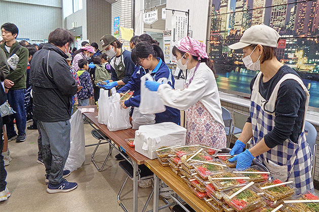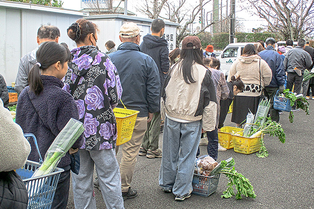 野菜の販売やお米と花の無料配布には、大行列ができました。
