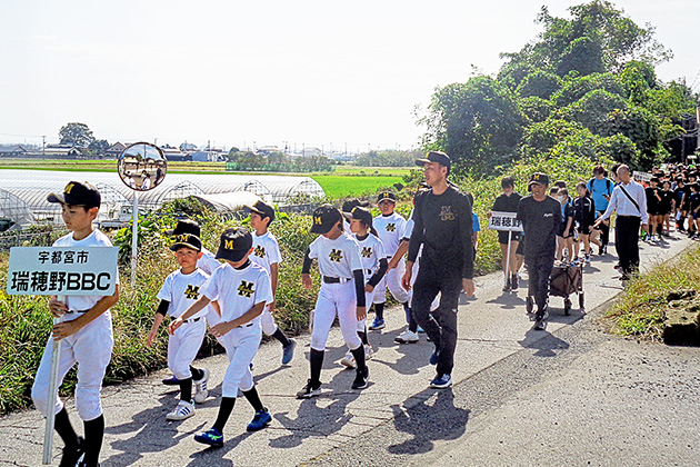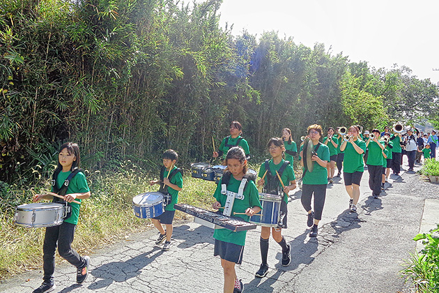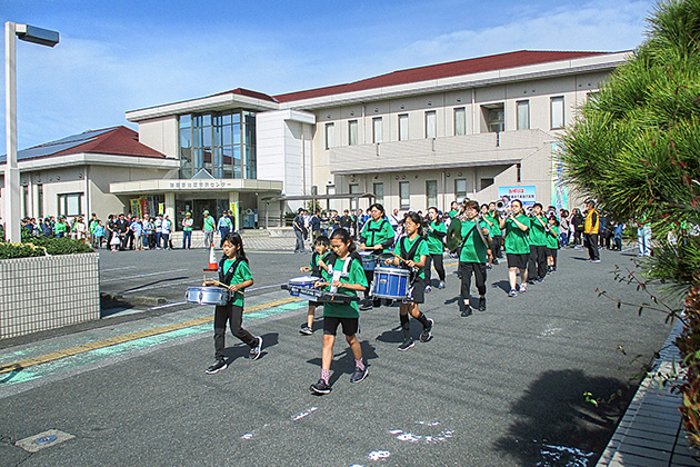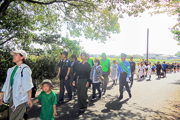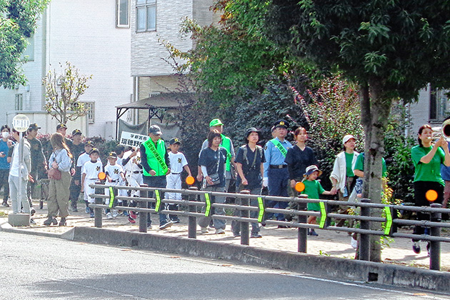 防犯意識の向上を目的とし、スポーツ少年団・瑞穂野中学校生徒や各自治会の方など約200人が、グリーンジュニアの演奏に合わせて、瑞穂野地区市民センターから、緑の郷さくらのもり公園までパレードを行いました。