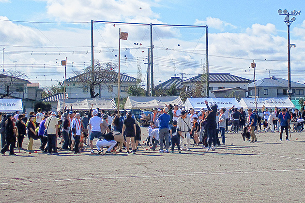 秋晴れのもと、各種目で子どもから高齢者まで、地域みんなで気持ちの良い汗を流しました。各チームとも団結し、最終種目の自治会対抗リレーでは、大いに盛り上がりました。