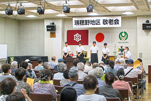 9月7日(日)に、瑞穂野地区市民センターで「敬老会」が開催され、約160人が参加しました。